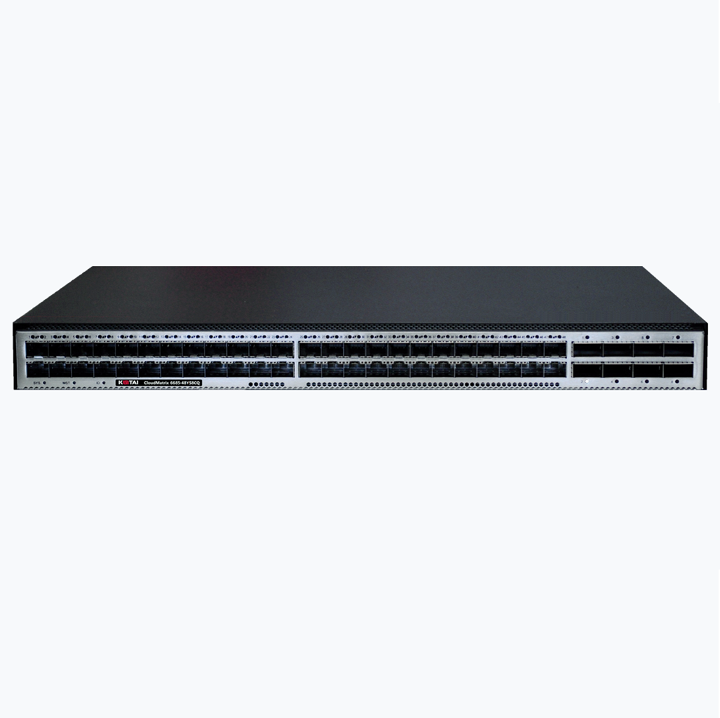 CloudMatrix 6655-48XS8CQ 交换机给予48个10GE SFP+接口,8个100GE QSFP28接口,或8个40GE QSFP+接口。